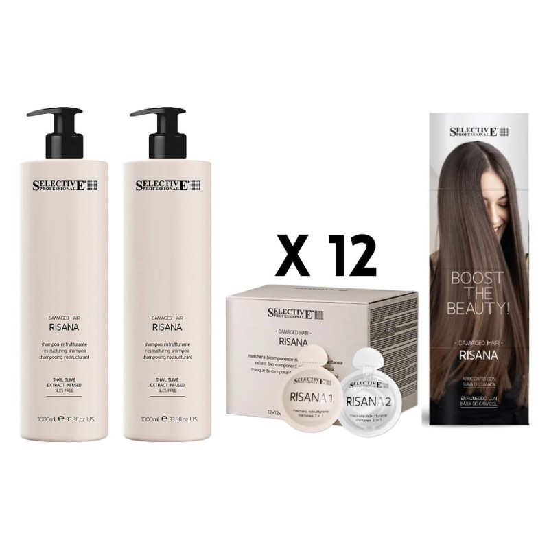 RISANA el reestructurante instantáneo que repara el cabello, fortaleciéndolo y dejándolo brillante. Actúa en tan solo 3-5 minutos en todo tipo de cabello que necesite ser reparado, mejora la hidratación y elasticidad del cabello.