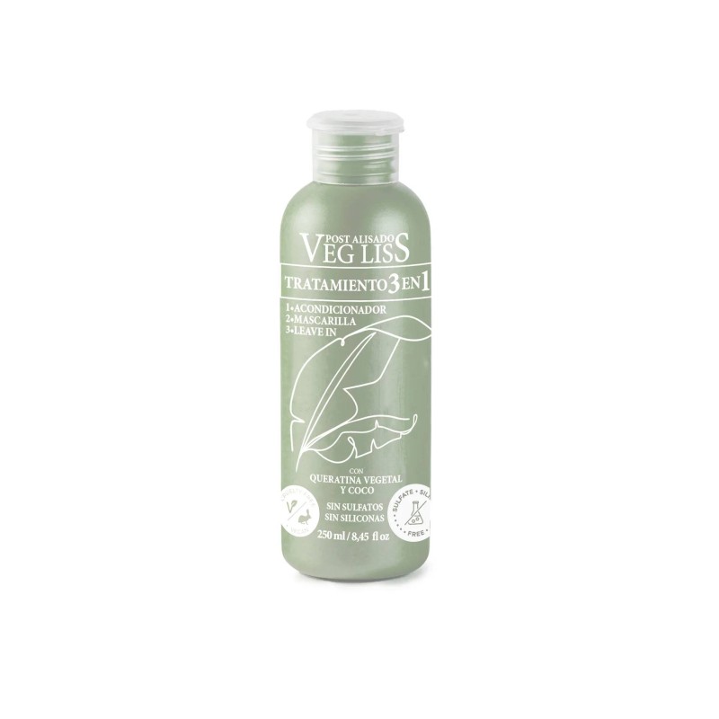 Nuestro increíble Tratamiento 3 en 1 (Acondicionador, Mask Leave) de VegLiss es la solución vegana perfecta para hidratar y cuidar todo tipo de cabello. Este versátil tratamiento te brinda una solución práctica en cualquier situación.